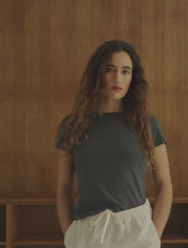 ZIA accompagne en douceur le passage vers le No Bra. Son col rond épuré, ses manches courtes et sa brassière intérieure signature offrent un maintien confortable et une forme naturelle, sans armatures ni compression.